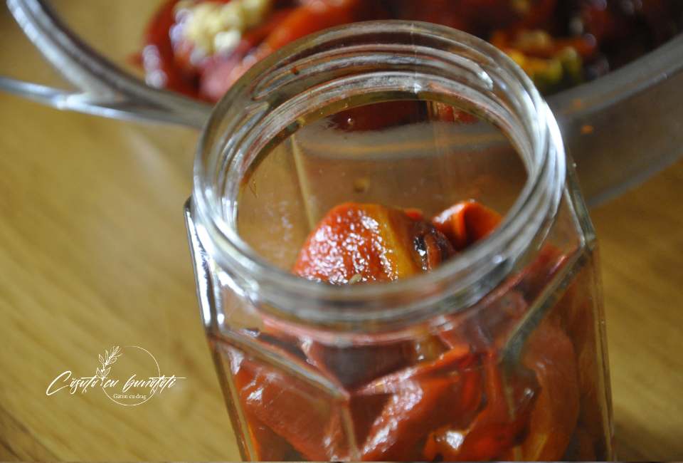 - Eu una, am asteptat cu curatatul ardeilor pana s-au uscat si racit borcanele sterilizate ca sa fac toata treaba o data.