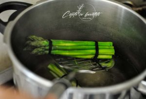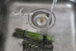 Intre timp, cat am curatat sparanghelul, apa a pornit sa fiarba.