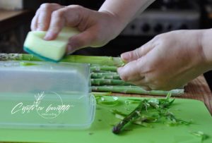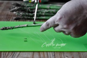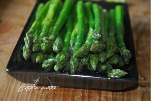 Dupa 2 minute jumatate, am intepat o tulpina ca sa ii verific consistenta. Daca e nevoie, se mai găteste pana se înmoaie. Personal consider ca sparanghelul blansat fix trei minute are consistenta perfecta. E drept, aici e si chestie de gust personal dar ca sa va aflati propria preferinta, va trebui sa experimentati gustand sparanghelul dupa diversi timpi ca sa vedeti ce preferati.