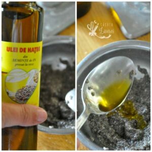 - puteti folosi ce tip de ulei doriti dar eu zic ca aici uleiul de in face toata diferenta, ii da un gust subtil de peste. In fapt, juri ca e ulei de peste.