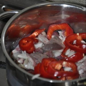1 - 2bucatiardei gras rosu curatat si taiat fasiute sau 3 linguri pasta de ardei